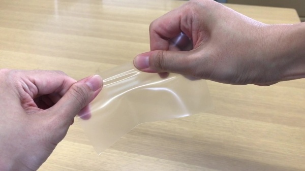 通常のフィルムとは素材が異なり、このようにクッション性があり、厚みもあります。